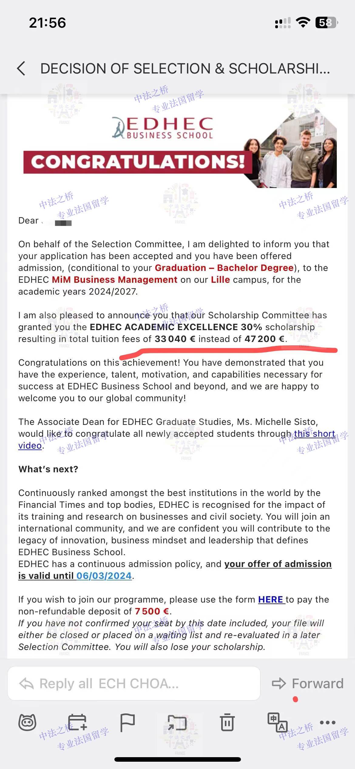 2024-2025法国EDHEC高商GE项目录取(带30%奖学金)