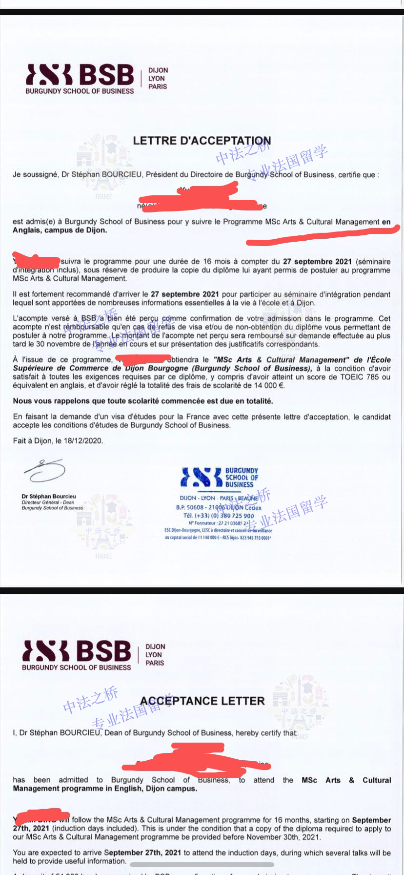 2021-2022 法国第戎高商BSB文化艺术管理专业硕士录取