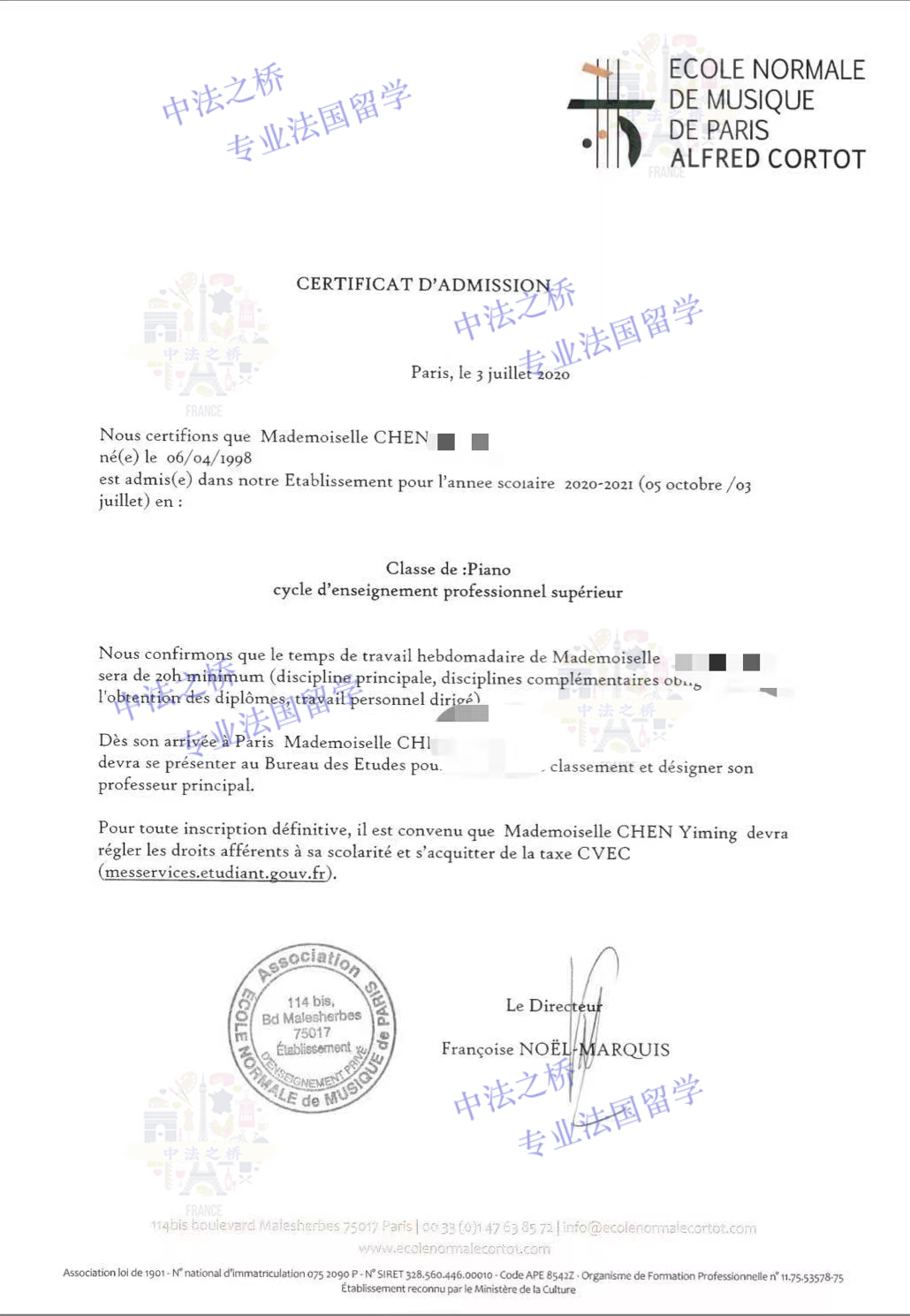 2021-2022巴黎高等音乐师范学院钢琴专业录取(陈同学)