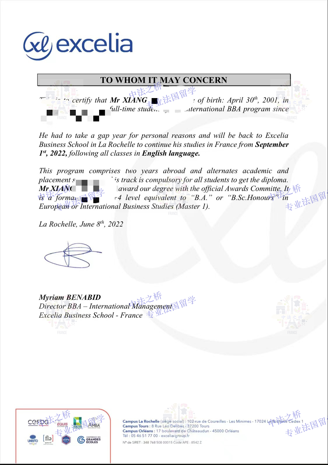 2022-2023法国拉罗谢尔高商本科2年级录取