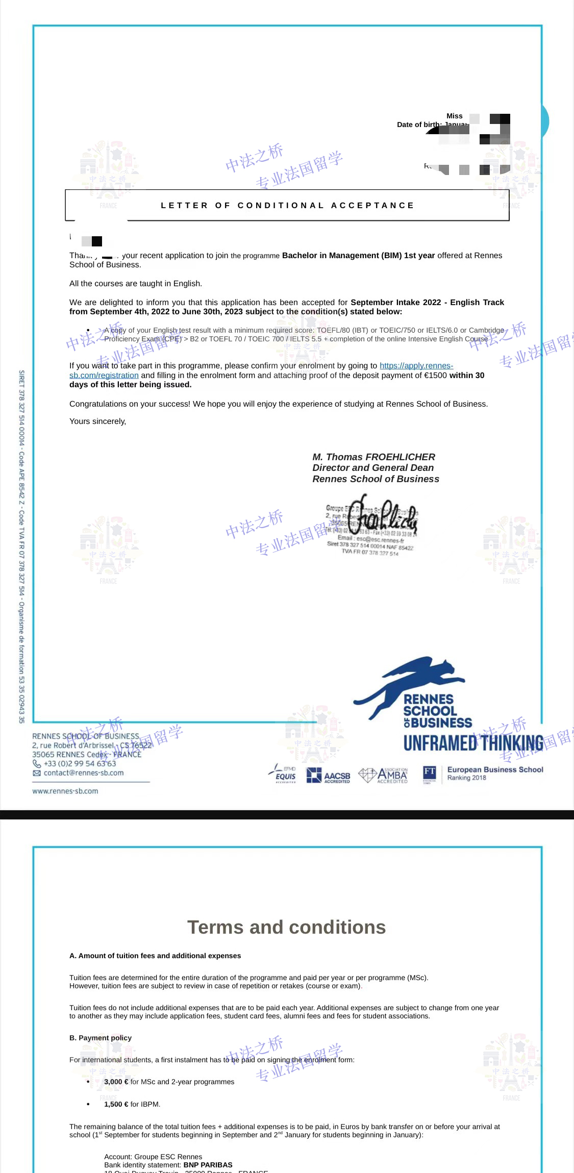 2022-2023法国雷恩高商本科一年级BIM专业录取