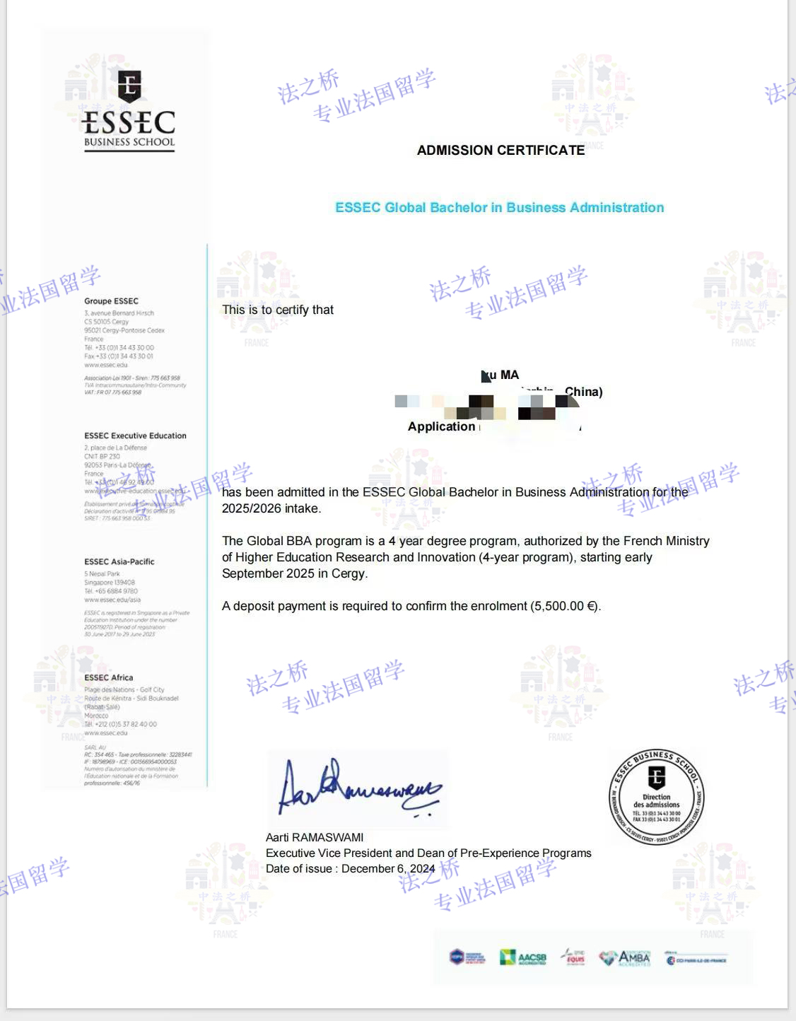 网站首页:法国高商及专业类院校2025-2026法国ESSEC高商本科大一录取