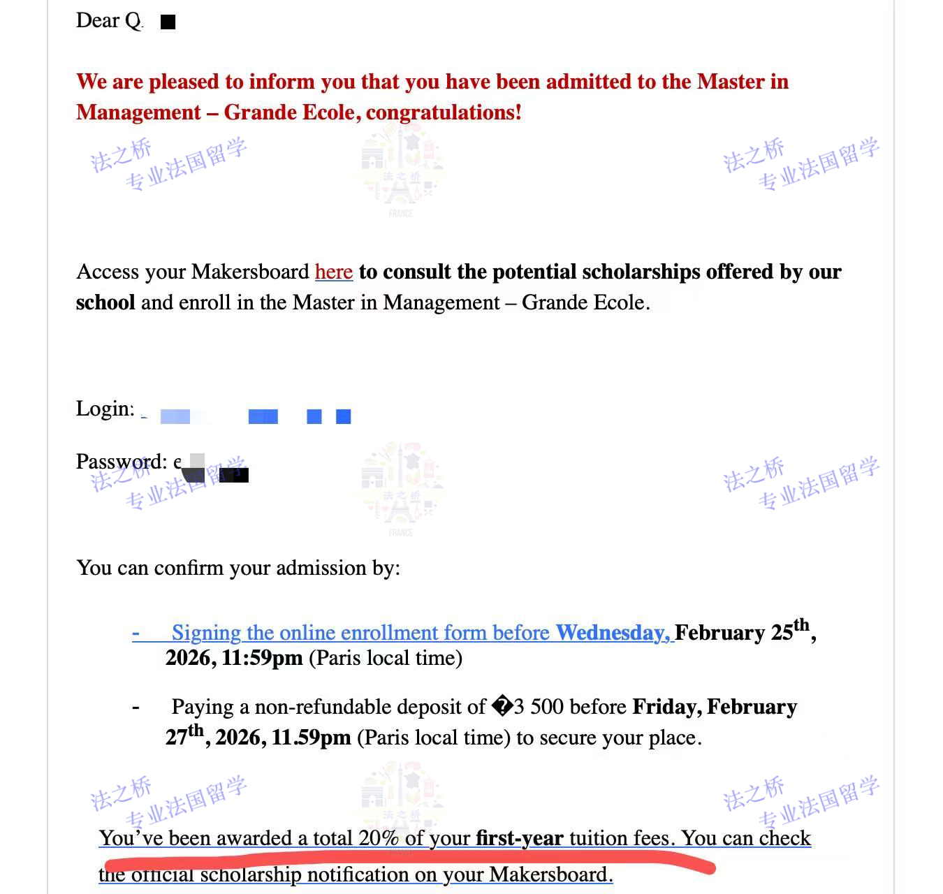 网站首页:法国高商及专业类院校2026-2027法国里昂高商GE项目录取(带20%奖学金)