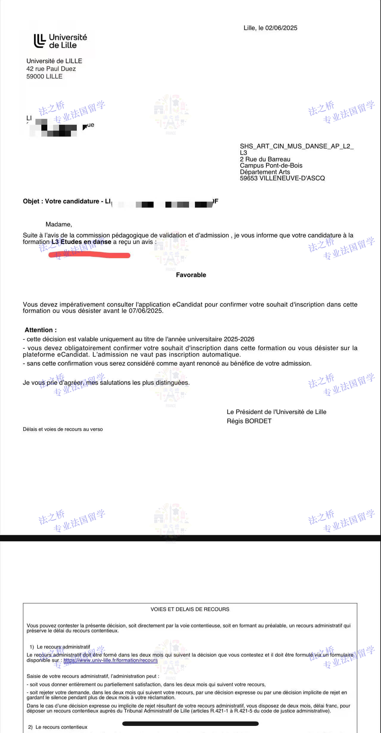 2025-2026法国里尔大学L3年级舞蹈学专业录取