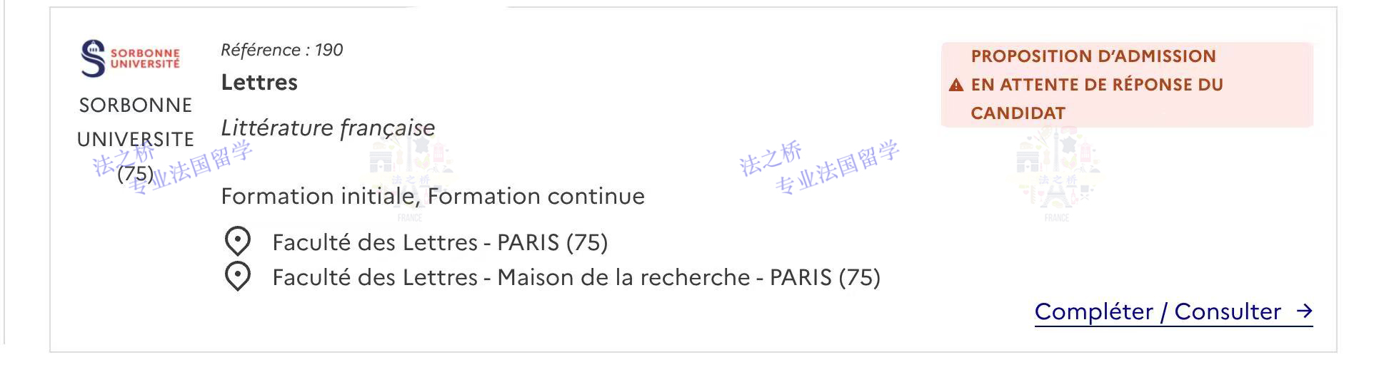 2025-2026法国索邦大学M1年级法国文学专业录取