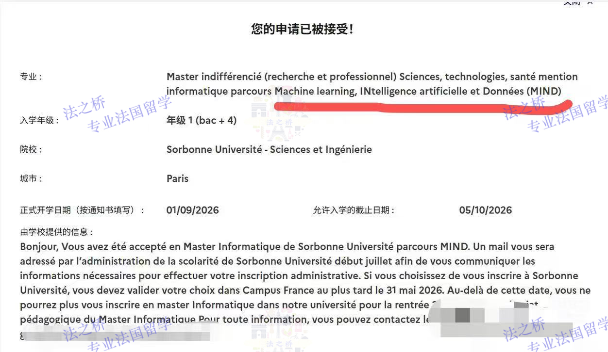 2026-2027年法国索邦大学M1年级MIND专业录取
