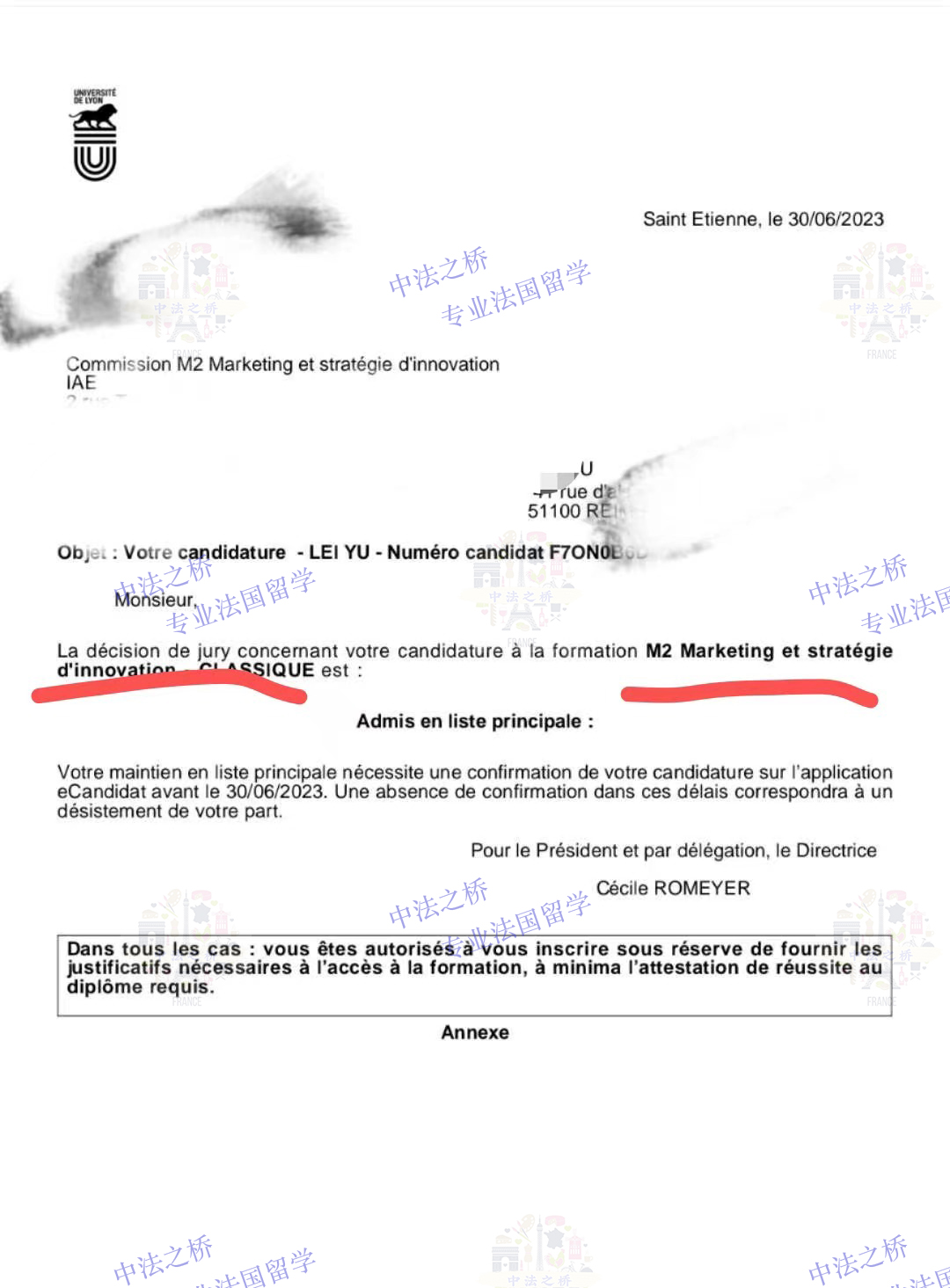 2023-2024法国里昂一大M2年级M2 marketing et stratégie专业录取