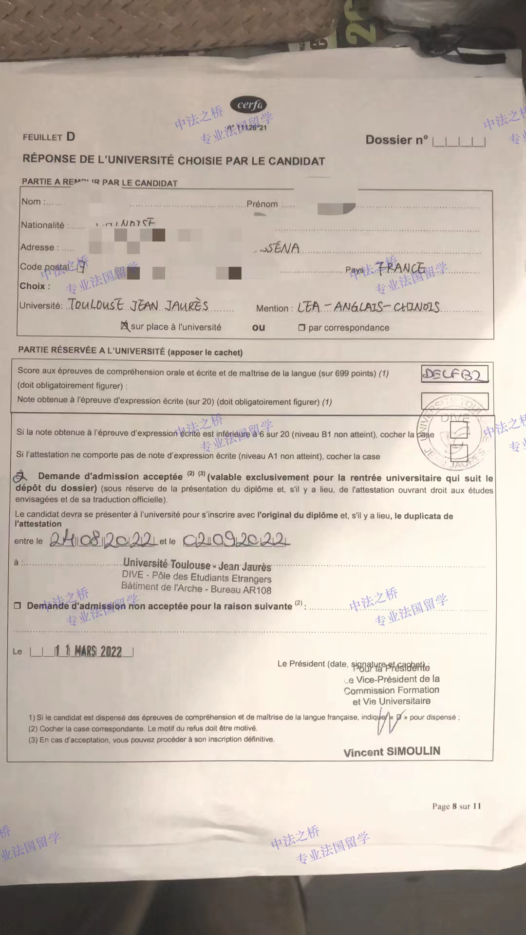 2022-2023法国图卢兹二大LEA专业L1年级录取