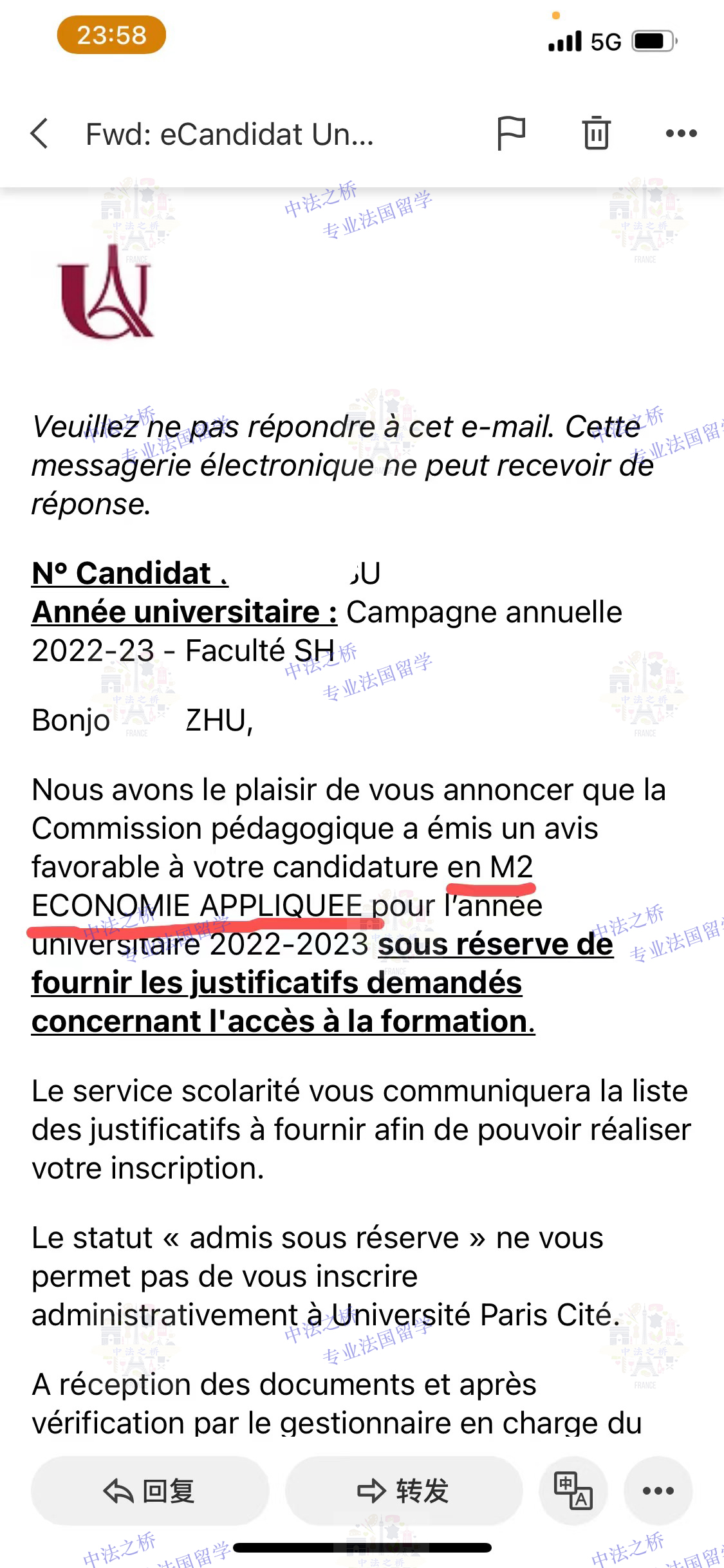 2022-2023法国巴黎西岱大学M2年级应用经济专业录取
